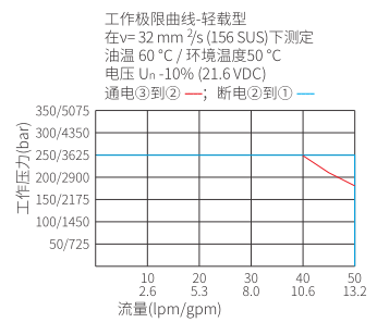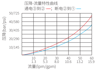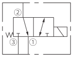 断电时,允许油液从 ② 流向 ① ,通电后,阀芯移动,允许油液从 ③ 流向 ② 。