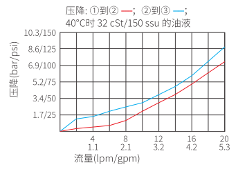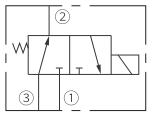 断电时,允许油液从 ③ 流向 ② ,通电后,阀芯移动,允许油液从 ② 流向 ① 。