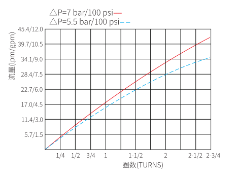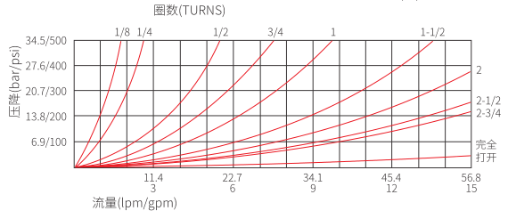 逆时针旋转调解器时,可以使节流孔从完全闭合到完全打开。